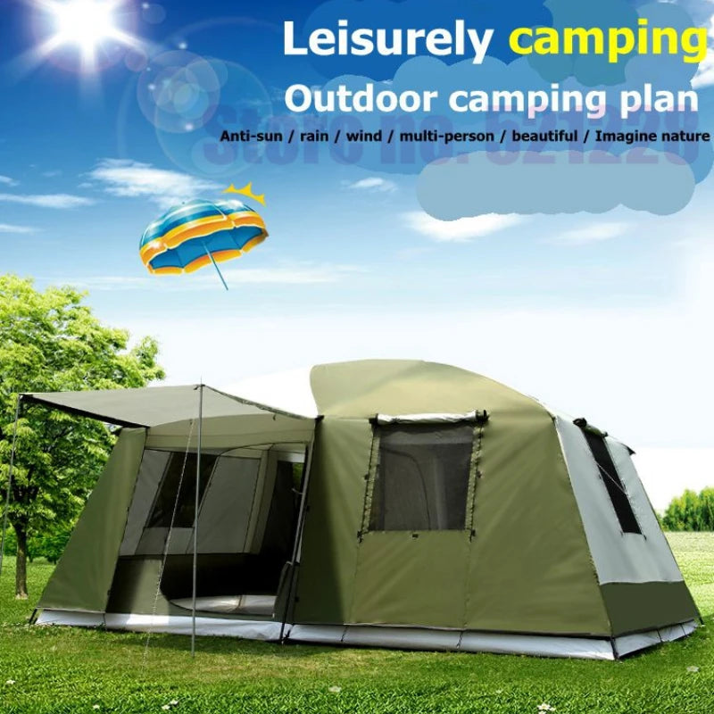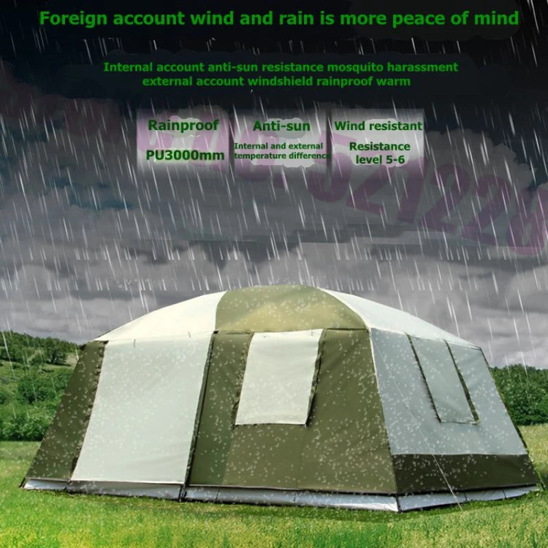 2 Bedroom 1 living room big UV 10-12 person luxury family party Base Anti rain hiking travel mountaineering outdoor camping tent