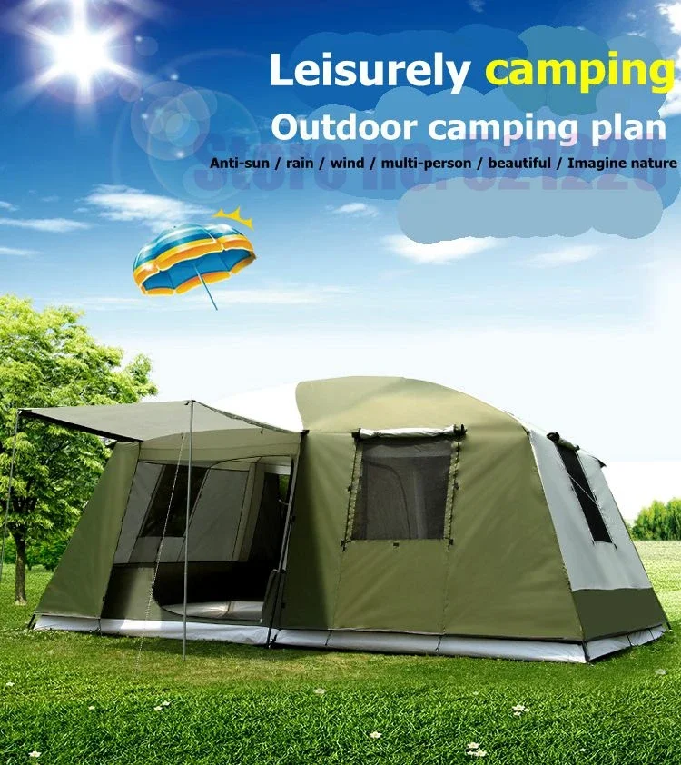 8 10 12 Person Luxury Family Party Relief Car Tent Hiking 2 Bedroom 1 Living Room Travel Mountaineering Outdoor Camping Awning