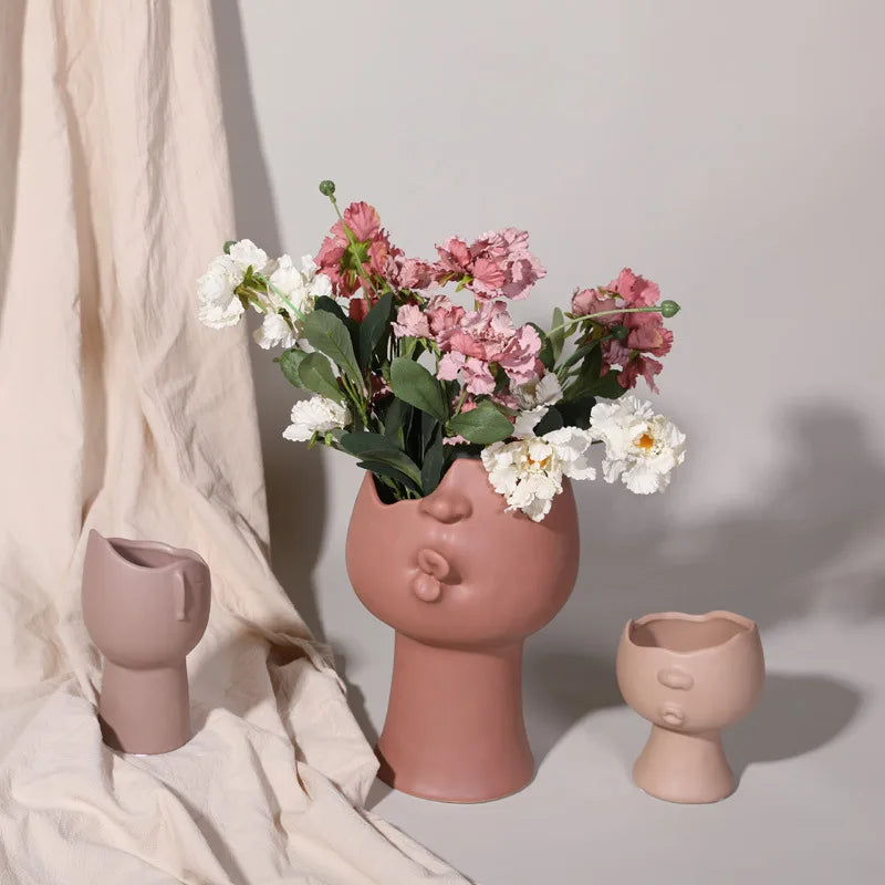 Cartoon Pouting Figure Ceramic Vase Living Room Decoration Abstract Art Face Vase Flower Arrangement Crafts Home Decoration New