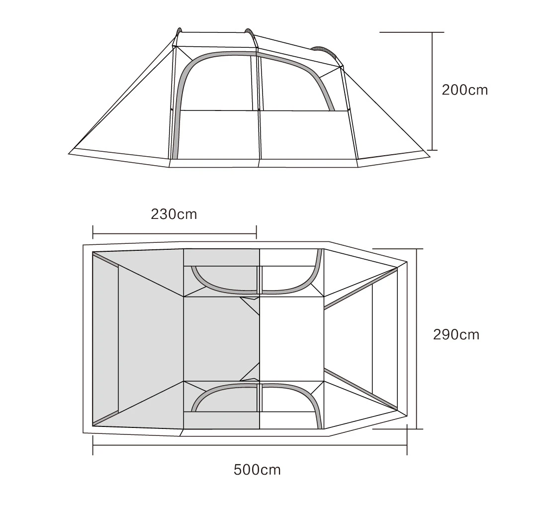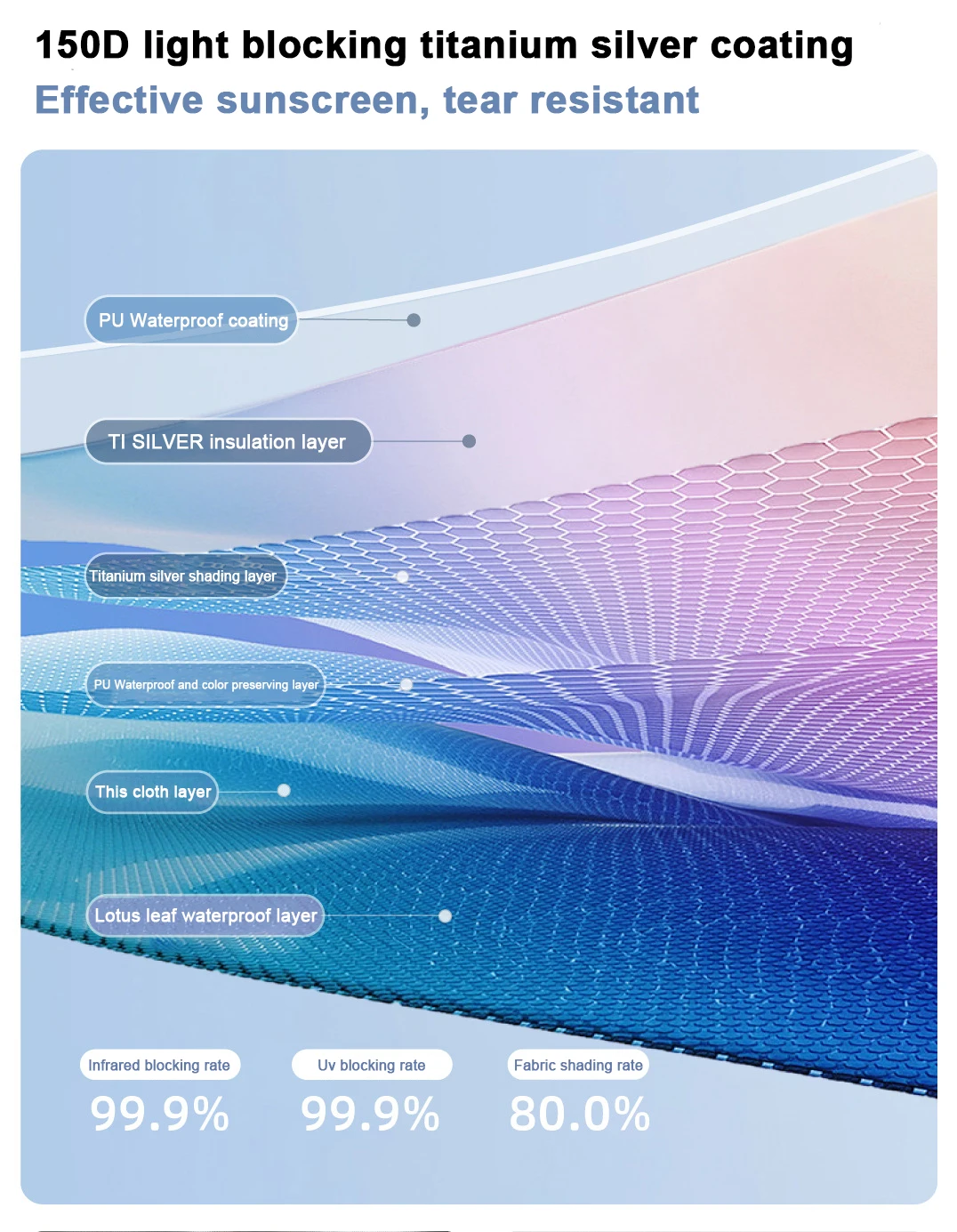 Outer tent fabric: 150D PU2000mm strong waterproof shading titanium silver