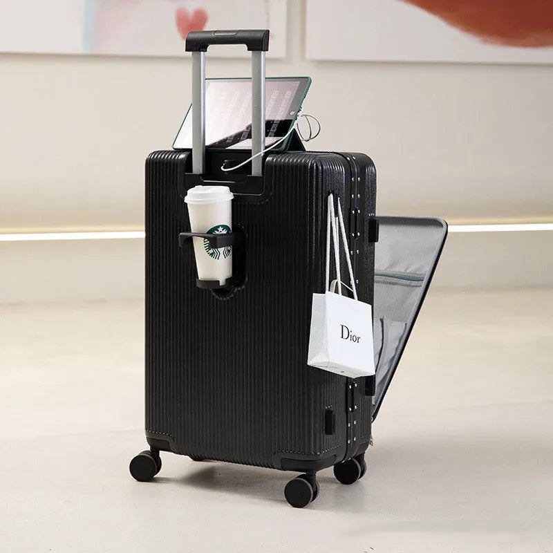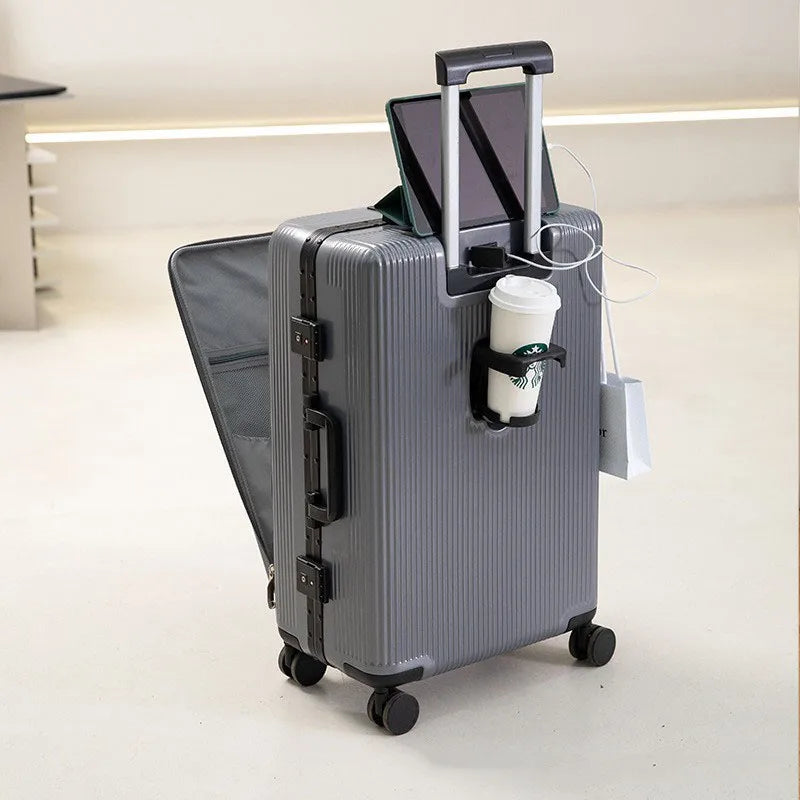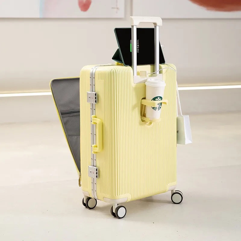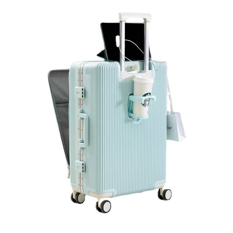 Multifunctional Aluminum Frame Suitcase Front Opening Pull Rod Luggage Password Universal Wheel Boarding Bag