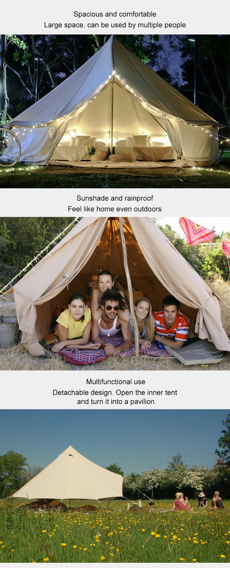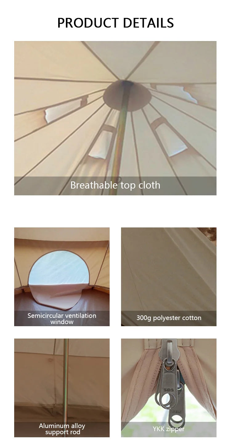 Outdoor Camping Luxury Glamping Cotton Canvas Yurt Bell Tent,Pyramid Tipi Teepee 4 Meter Canvas Tent Glamping