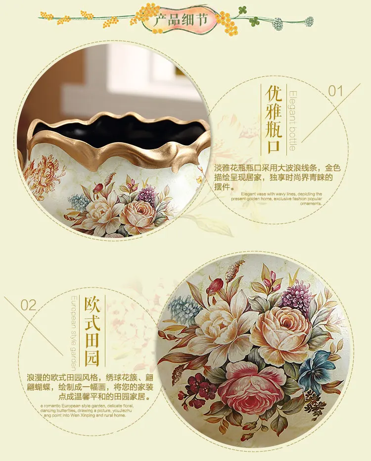 Retro desk vase living room dining table decorative handicrafts ornament flowerpot Classical vase floor